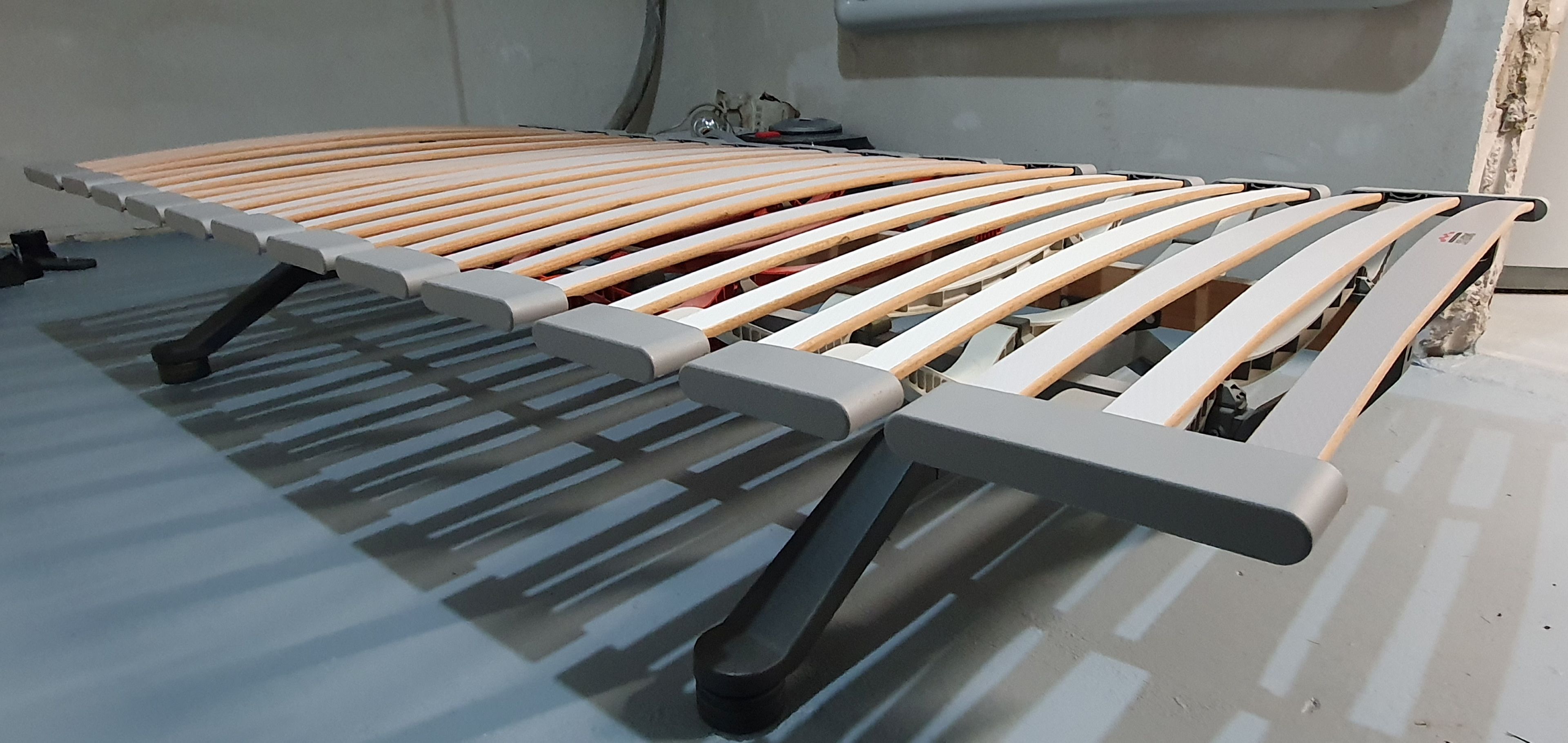 Beschreibung: Verschenke 2 Lattenroste Marke SWISSFLEX, SF505/ uni 20 Fix, 100 x 200 cm, können auf Füßen freistehen oder in Bettgestelle eingebaut werden.